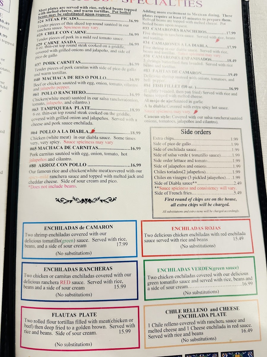 “ Since moving to Texas, we haven’t had decent Mexican food, specifically enchiladas. The taste and flavor of the ones we had (cheese & shredded beef) were very good with good flavor. My one and only wish was that they were hotter. While the plate was hot, the inside of the enchiladas were lukewarm warm at best. Normally I ask for them to be extra hot temp wise but I didn’t this time because it’s been years since I’ve had anything that looked this good when they came out. The salsa and guacamole was very good and worth ordering. ”